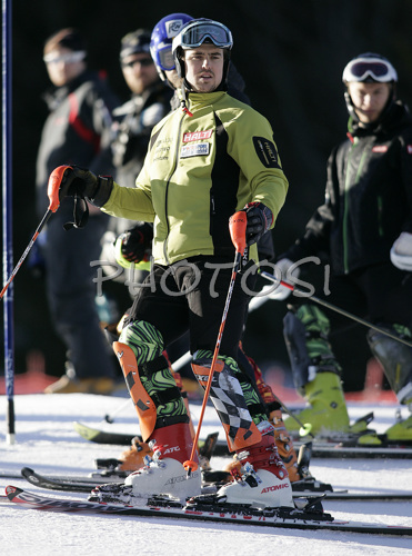 : Jukka Leino of Finland inspecting course of first run of Men Alpine skiing slalom FIS World Cup in Kranjska Gora, Slovenia. Men slalom FIS Alpine skiing World Cup was held on 4th of March 2007 in Kranjska Gora, Slovenia.