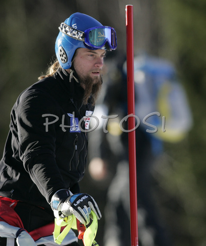 : Filip Trejbal of Czech inspecting course of first run of Men Alpine skiing slalom FIS World Cup in Kranjska Gora, Slovenia. Men slalom FIS Alpine skiing World Cup was held on 4th of March 2007 in Kranjska Gora, Slovenia.