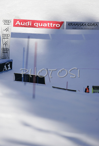 : Course of first run of Men Alpine skiing slalom FIS World Cup in Kranjska Gora, Slovenia. Men slalom FIS Alpine skiing World Cup was held on 4th of March 2007 in Kranjska Gora, Slovenia.