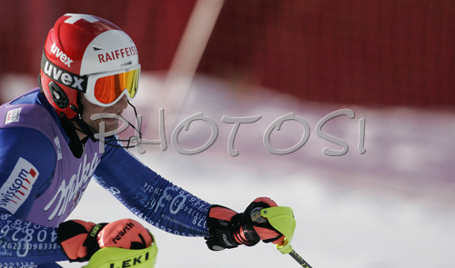 : Silvan Zurbriggen of Switzerland skiing in first run of Men Alpine skiing slalom FIS World Cup in Kranjska Gora, Slovenia. Men slalom FIS Alpine skiing World Cup was held on 4th of March 2007 in Kranjska Gora, Slovenia.