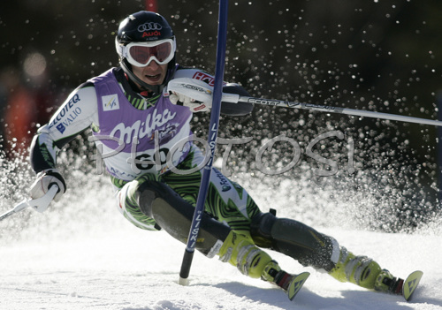 : Tuukka Kaukoniemi of Finland skiing in first run of Men Alpine skiing slalom FIS World Cup in Kranjska Gora, Slovenia. Men slalom FIS Alpine skiing World Cup was held on 4th of March 2007 in Kranjska Gora, Slovenia.
