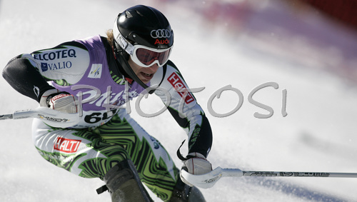 : Tuukka Kaukoniemi of Finland skiing in first run of Men Alpine skiing slalom FIS World Cup in Kranjska Gora, Slovenia. Men slalom FIS Alpine skiing World Cup was held on 4th of March 2007 in Kranjska Gora, Slovenia.