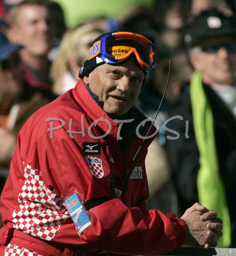 : Ante Kostelic of Croatia waiting for second run of his sun, Ivica Kostelic of Croatia in Men slalom FIS Alpine skiing World Cup race in Kranjska Gora, Slovenia. Men slalom FIS Alpine skiing World Cup race was held in Kranjska Gora, Slovenia on 4th of March 2007.