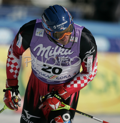 : Ivica Kostelic of Croatia is not happy with his performance in second run of Men slalom FIS Alpine skiing World Cup race in Kranjska Gora, Slovenia. Men slalom FIS Alpine skiing World Cup race was held in Kranjska Gora, Slovenia on 4th of March 2007.