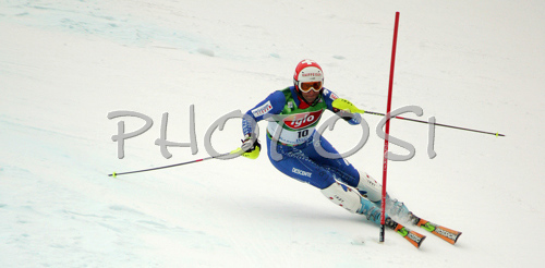 : Silvan Zurbriggen of Switzerland skiing in second run of men slalom race of Audi FIS Men Alpine skiing World Cup 2008. Slalom race was held in Bad Kleinkirchheim, Austria on 9th of December 2007.