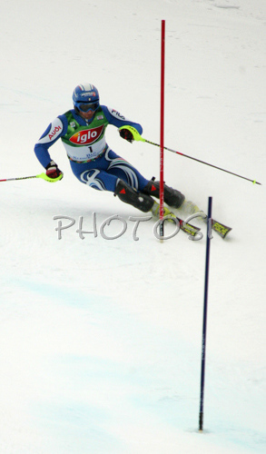 : Third placed Manfred Moelgg of Italy skiing in second run of men slalom race of Audi FIS Men Alpine skiing World Cup 2008. Slalom race was held in Bad Kleinkirchheim, Austria on 9th of December 2007.