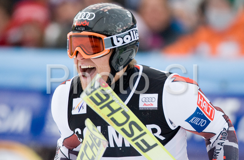: Kalle Palander of Finland reacts after winning ski World cup Giant Slalom race in Alta Badia, Italy. Giant slalom World cup race was held in Alta Badia, Italy, on 16th of December 2007.