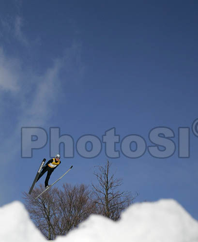 : Alan Alborn of USA soars through the air during e.on Ruhrgas FIS Ski Jumping World Cup finals. First race of FIS Ski Jumping World Cup finals was held in Planica, Slovenia on 18.March 2006.