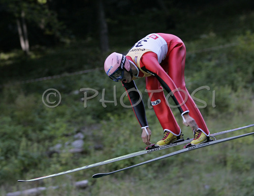 Kranj ,Slovenia - 01.09.2006 : Andrea Morassi of Italy having problems in the air during qualification jump for tomorrows Summer FIS Grand Prix in ski jumping Kranj 2006. Qualifications were held in Ski jumping center in Kranj, Slovenia on 1. September 2006. First 50 ski jumpers qualified for tomorrow Summer FIS Grand Prix in ski jumping Kranj 2006, which will be held in Kranj, Slovenia on 2. September 2006. Photo by: Primoz Jeroncic/PhotoSI