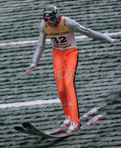 : Ilja Roliakov of Russia lands during Summer FIS Grand Prix in ski jumping Kranj 2006. Summer FIS Grand Prix in ski jumping Kranj 2006 was held on 2. of September 2006 in Kranj, Slovenia.