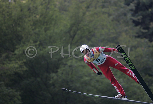 : Jure Sinkovec of Slovenia soars through the air during Summer FIS Grand Prix in ski jumping Kranj 2006. Summer FIS Grand Prix in ski jumping Kranj 2006 was held on 2. of September 2006 in Kranj, Slovenia.