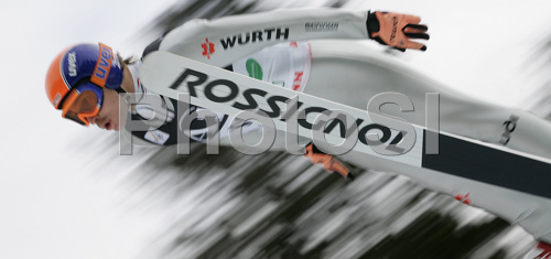 : Thorsten Schmitt of Germany soars through the air during first jump of FIS Nordic Combined World Cup, which was held in Ramsau am Dachstein, Austria, on 17th of December 2006.