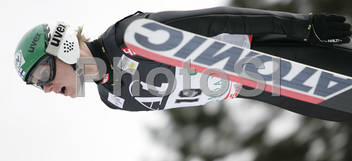 : Jouni Kaitainen of Finland soars through the air during first jump of FIS Nordic Combined World Cup, which was held in Ramsau am Dachstein, Austria, on 17th of December 2006.