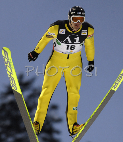 : Ville Kaehkonen of Finland soars through the air during ski jumping part of Nordic Combined World Cup. Nordic combined World Cup was held in Ramsau, Austria on 15th of December 2007.