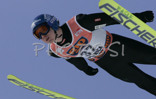: Harri Olli of Finland soars through the air in qualifications for first day of ski flying on FIS Ski jumping World Cup finals in Planica, Slovenia. FIS Ski jumping World Cup finals in Planica was held between 22nd and 25th of March 2007 in Planica, Slovenia. First competition day of ski flying was held in Planica on 23rd of March 2007.