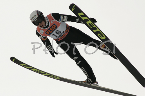 : 3rd placed Jernej Damjan of Slovenia soars through the air in first day of ski flying on FIS Ski jumping World Cup finals in Planica, Slovenia. FIS Ski jumping World Cup finals in Planica was held between 22nd and 25th of March 2007 in Planica, Slovenia. First competition day of ski flying was held in Planica on 23rd of March 2007.