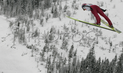 : Andreas Kofler of Austria soars through the air in trial serie for second day of ski flying on FIS Ski jumping World Cup finals in Planica, Slovenia. FIS Ski jumping World Cup finals in Planica was held between 22nd and 25th of March 2007 in Planica, Slovenia. Second competition day of ski flying was held in Planica on 24rd of March 2007.
