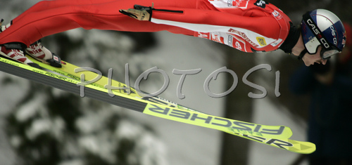 : Winner Adam Malysz of Poland soars through the air in first round of second day of ski flying on FIS Ski jumping World Cup finals in Planica, Slovenia. FIS Ski jumping World Cup finals in Planica was held between 22nd and 25th of March 2007 in Planica, Slovenia. Second competition day of ski flying was held in Planica on 24rd of March 2007.