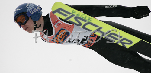 : Harri Olli of Finland soars through the air in last last competition of ski flying on FIS Ski jumping World Cup finals in Planica, Slovenia. FIS Ski jumping World Cup finals in Planica was held between 22nd and 25th of March 2007 in Planica, Slovenia. Last competition of ski flying had due bad weather and hard snowfall only one serie and was held in Planica on 25rd of March 2007.