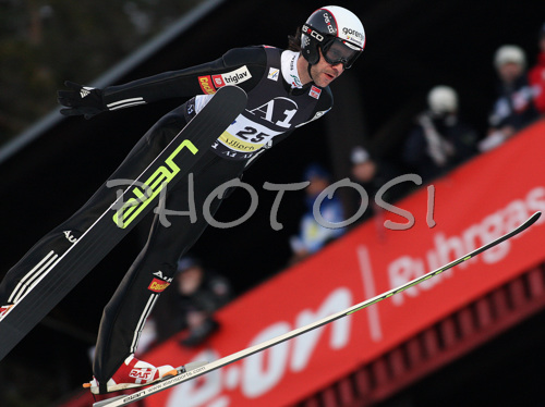 : Primoz Peterka of Slovenia soars through the air during FIS Ski jumping World Cup race in Villach, Austria. First of two ski jumping World Cup races in Villach, Austria was held on 13th of December 2007, as substitute race for canceled race in Kranj, Slovenia