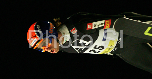 : Primoz Pikl of Slovenia soars through the air during second race of FIS Ski jumping World Cup in Villach, Austria. FIS Ski jumping World Cup race was held in Villach, Austria, on 14th of December 2007.