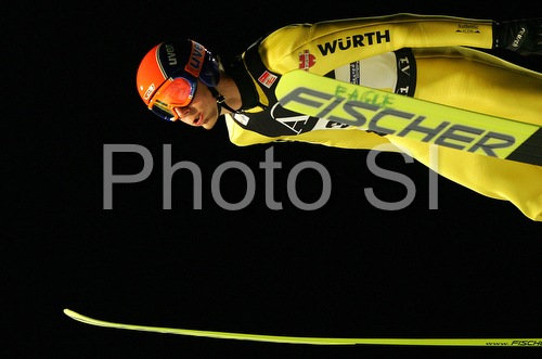 Villach ,Austria - 14.12.2007 : Stephan Hocke of Germany soars through the air during second race of FIS Ski jumping World Cup in Villach, Austria. FIS Ski jumping World Cup race was held in Villach, Austria, on 14th of December 2007. Photo by: Primoz Jeroncic/PhotoSI