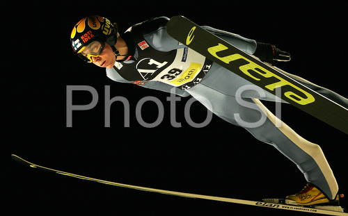 Villach ,Austria - 14.12.2007 : Janne Happonen of Finland soars through the air during second race of FIS Ski jumping World Cup in Villach, Austria. FIS Ski jumping World Cup race was held in Villach, Austria, on 14th of December 2007. Photo by: Primoz Jeroncic/PhotoSI