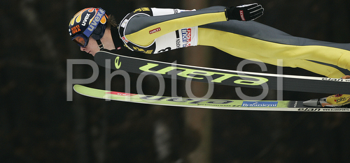 : Sami Niemi of Finland soars through the air in qualifications for last race of Four Hill ski jumping tournament 2008 in Bischofshofen, Austria. Last race of 4 Hill ski jumping tournament 2008 was held in Bischofshofen, Austria on 6th of January 2008.