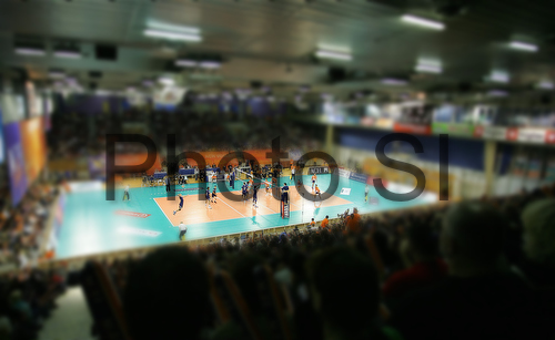 : Players of ACH Volley (R) and Paris Volley (L) during match of 3rd round of Indesit European Champions League between ACH Volley, Bled, Slovenia and Paris Volley, France. Match was played in Tivoli arena, Ljubljana, Slovenia on 12th of December 2007.