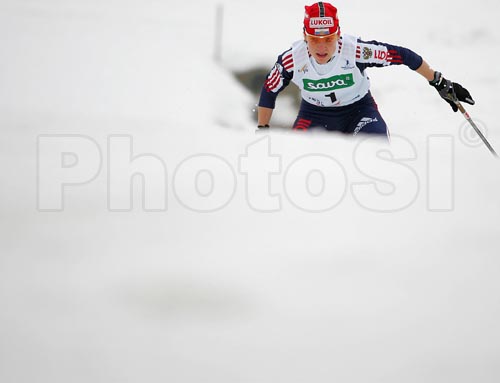 : Natalia Matveeva of Russia skiing during Junior Women qualification for FIS Nordic Junior Ski World Championships Sprint race were held in Medvode, Slovenia. First 32 skiers qualified for afternoon finals.