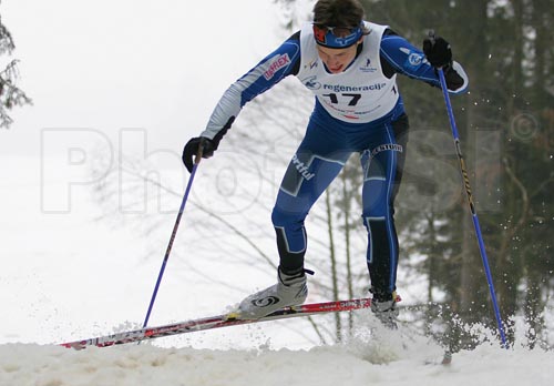 : Martti Jylhae of Finland skiing during Junior Men qualification for FIS Nordic Junior Ski World Championships Sprint race were held in Medvode, Slovenia. First 30 skiers qualified for afternoon finals.