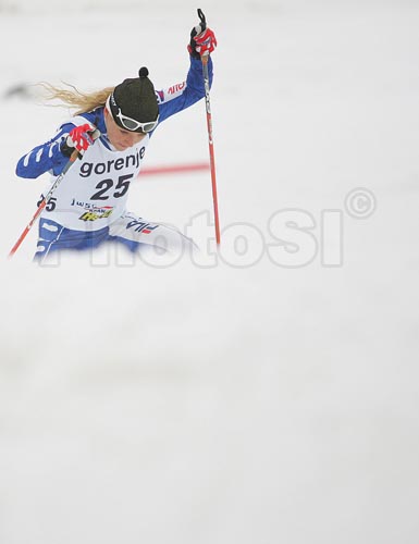 : Marina Piller of Italy skiing during Under-23 Women qualification for FIS Nordic Junior Ski World Championships Sprint race were held in Medvode, Slovenia. First 32 skiers qualified for afternoon finals.