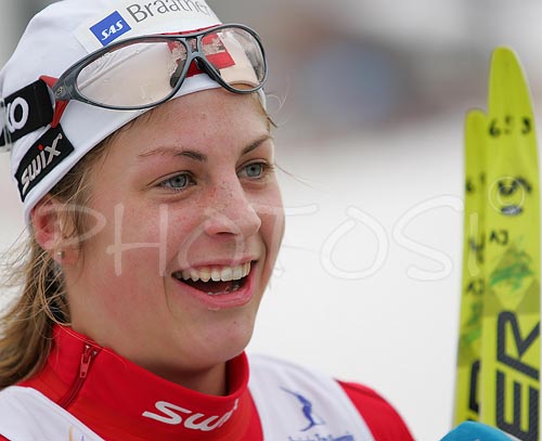 : Portrait of winner Astrid Jacobsen of Norway. Jacobsen won Junior Women finals of FIS Nordic Junior Ski World Championship sprint race were held in Medvode, Slovenia. Race was won by Astrid Jacobsen of Norway, Natalia Matveeva of Russia placed second, Celine Brun-Lie of Norway placed third, while Charlotte Kalla of Sweden finished fourth.