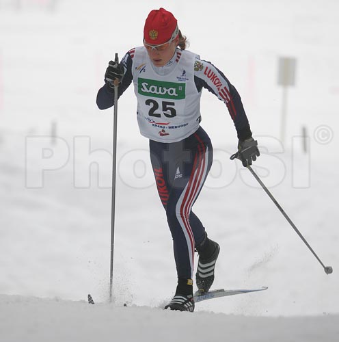 Medvode ,Slovenia - 02.02.2006 : Third placed Ioulia Artemova of Russia skiing during Under-23 Women FIS Nordic Junior Ski World Championships 10km Classic race which was held in Medvode, Slovenia. Race was won by Justyna Kowalczyk of Poland, Irina Artemova of Russia placed second, while her teammate Ioulia Tchekalova of Russia placed third. Photo by: Primoz Jeroncic/PhotoSI