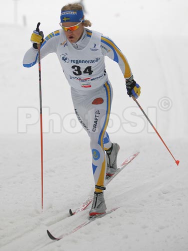 : Mikael Ojala of Sweden skiing during Under-23 Men FIS Nordic Junior Ski World Championships 10km Classic race which was held in Medvode, Slovenia. Race was won by Franz Goering of Germany, Maxim Bulgakov of Russia placed second, while his teammate Alexander Legkov of Russia placed third.
