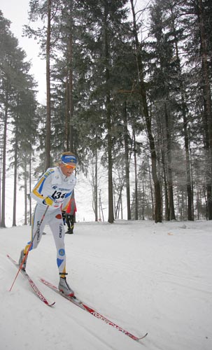 : Mikael Ojala of Sweden skiing during Under-23 Men FIS Nordic Junior Ski World Championships 10km Classic race which was held in Medvode, Slovenia. Race was won by Franz Goering of Germany, Maxim Bulgakov of Russia placed second, while his teammate Alexander Legkov of Russia placed third.