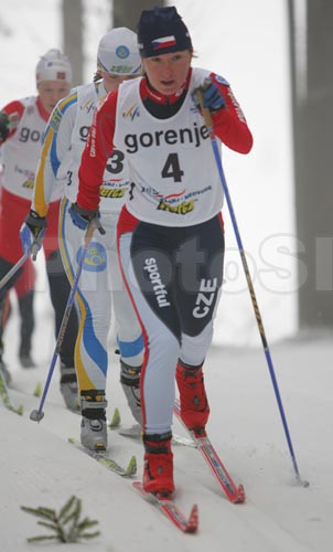 : Eva Nyvltova of Czech skiing during Junior Women FIS Nordic Junior Ski World Championships 5+5km pursuit race which was held in Medvode, Slovenia.