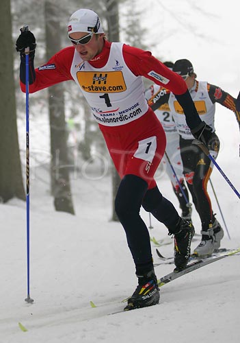 : Winner Petter Northug of Norway skiing during Junior Men FIS Nordic Junior Ski World Championships 10+10km pursuit race which was held in Medvode, Slovenia.