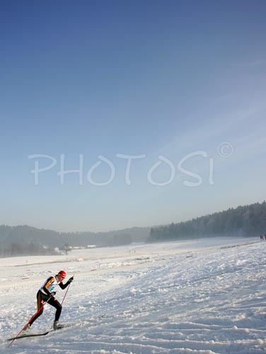 : Tom Beetz of Germany skiing during Junior Nordic Combined Ski World Championship Team race. Race was won by Germany, Austria placed second and Norway finished third.