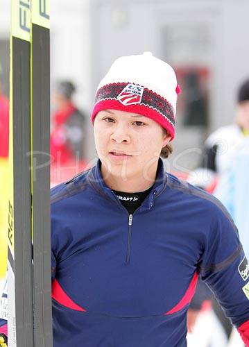 : Laura Valaas of USA after she finished skiing in Under-23 Women FIS Nordic Junior Ski World Championships 7.5+7.5km pursuit race which was held in Medvode, Slovenia.