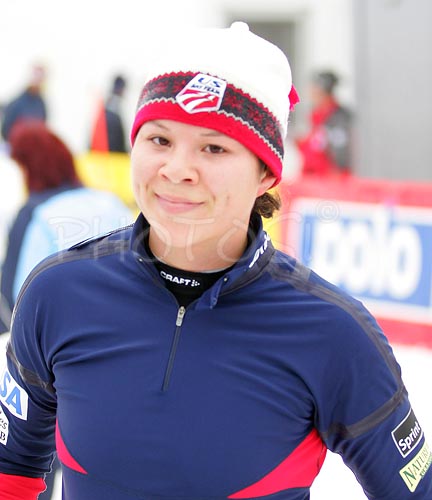 : Laura Valaas of USA after she finished skiing in Under-23 Women FIS Nordic Junior Ski World Championships 7.5+7.5km pursuit race which was held in Medvode, Slovenia.