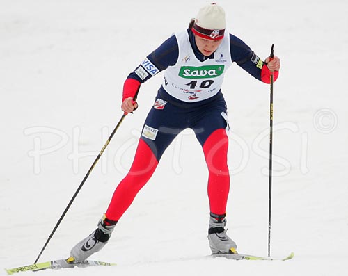 : Laura Valaas of USA skiing during Under-23 Women FIS Nordic Junior Ski World Championships 7.5+7.5km pursuit race which was held in Medvode, Slovenia.