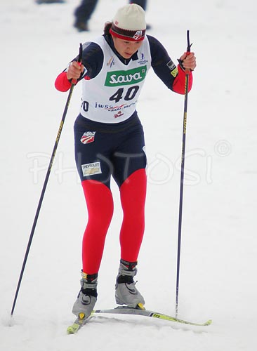 : Laura Valaas of USA skiing during Under-23 Women FIS Nordic Junior Ski World Championships 7.5+7.5km pursuit race which was held in Medvode, Slovenia.