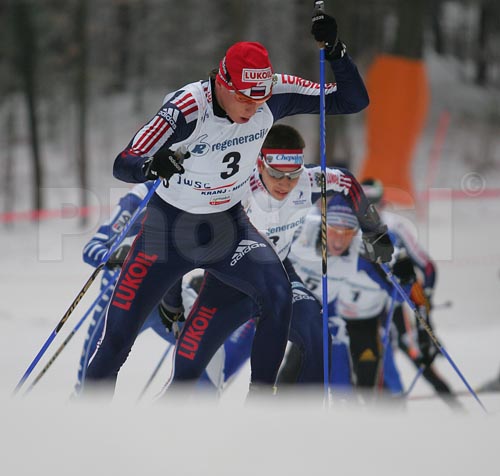 : Winner Alexander Legkov of Russia skiing during Under-23 Men FIS Nordic Junior Ski World Championships 15+15km pursuit race which was held in Medvode, Slovenia.