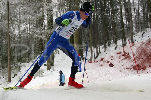 : Matti Heikkinen of Finland skiing during Under-23 Men FIS Nordic Junior Ski World Championships 15+15km pursuit race which was held in Medvode, Slovenia.