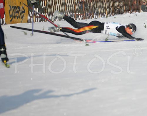: Daniel Heun of Germany lost bronze medal when he fall 2 meters infront of finish line of Junior Men FIS Nordic Junior Ski World Championships 4x5km relay race which was held in Medvode, Slovenia. Race was won by Norway, Russia placed second, while relay of Czech finished third.