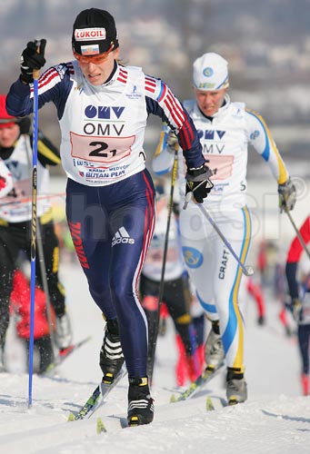 : Nina Ryusina of Russia skiing during first leg of Junior Women FIS Nordic Junior Ski World Championships 4x3.3km relay race which was held in Medvode, Slovenia. Race was won by Norway, Sweden placed second, while Russia finished third.