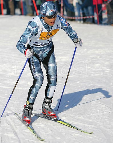 : Second placed Akito Watabe of Japan skiing during Junior Nordic Combined sprint race of FIS Nordic Junior Ski World Championships which was held in Medvode, Slovenia on 5.February 2006.