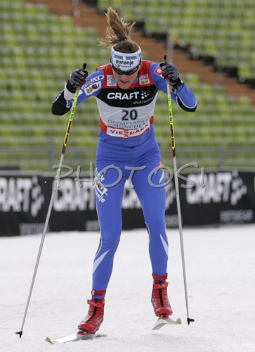 : Petra Majdic of Slovenia skiing in qualifications of first race of FIS Viessmann Tour de Ski. Women sprint race in Munich, Germany was, after cancelation of races in Nove Mesto, Czech, first race of FIS Viessmann Tour de Ski and was held in Olympic stadium in Munich, Germany on 31st of December 2006.