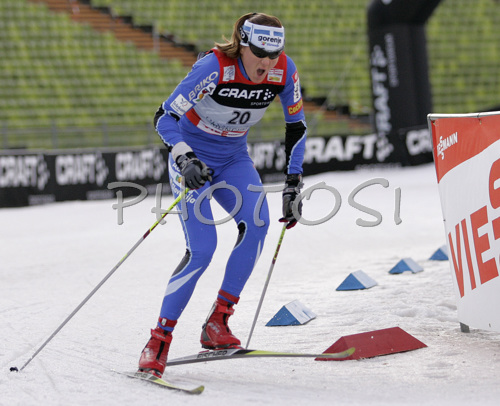 : Petra Majdic of Slovenia skiing in qualifications of first race of FIS Viessmann Tour de Ski. Women sprint race in Munich, Germany was, after cancelation of races in Nove Mesto, Czech, first race of FIS Viessmann Tour de Ski and was held in Olympic stadium in Munich, Germany on 31st of December 2006.